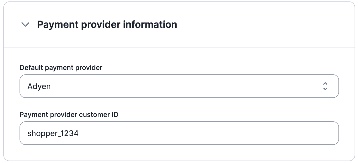 - Provide the Adyen Shopper Reference as the Lago Payment provider customer ID.