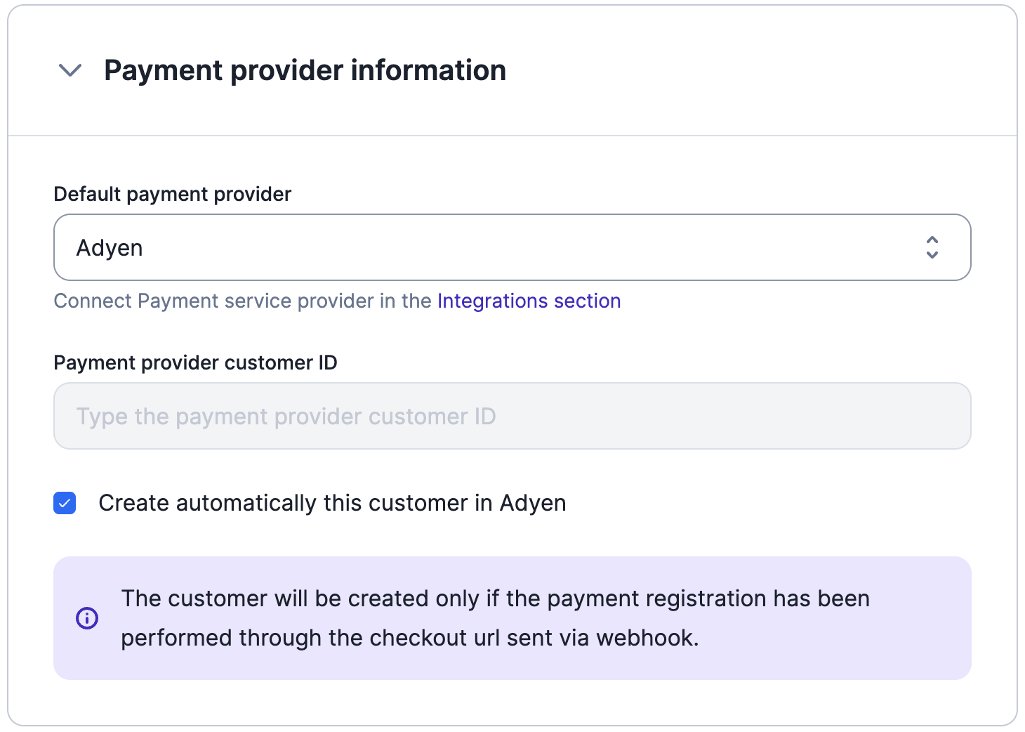 Setting Adyen as a Payment Provider for a customer